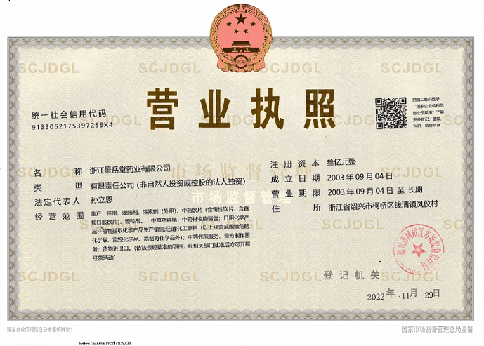 景岳堂藥業(yè)營(yíng)業(yè)執(zhí)照(正本):